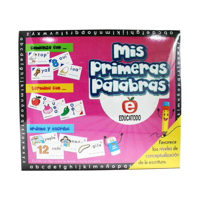 Mis Primeras Palabras es un producto didáctico fantástico que motiva a los pequeños para empezar aprender, distinguir letras y escribir palabras de una sílaba. Favorece la discriminación visual y auditiva, aumenta la capacidad de atención y concentración. Aprenden a acomodar en secuencia correcta las letras que forman una palabra, determinan la letra inicial, así como la letra con la que termina. Se ofrecen muchos ejercicios diferentes para poder formar palabras.
