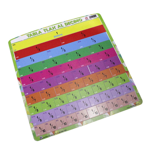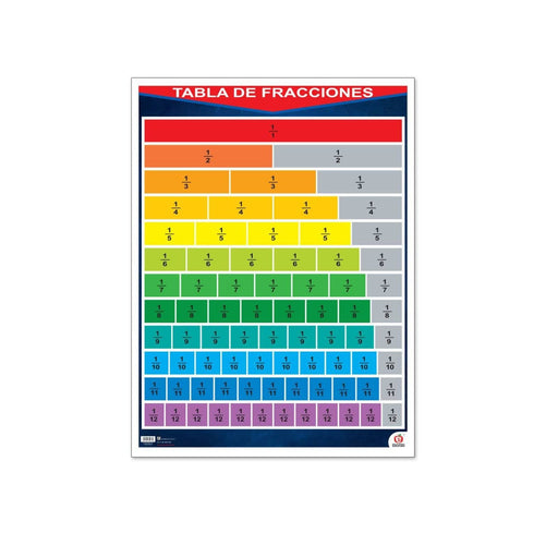 En stockEs un excelente material didáctico, útil para el aprendizaje y/o reforzamiento de la Tabla de Fracciones. Producto impreso en papel de 1ª clase, ...
