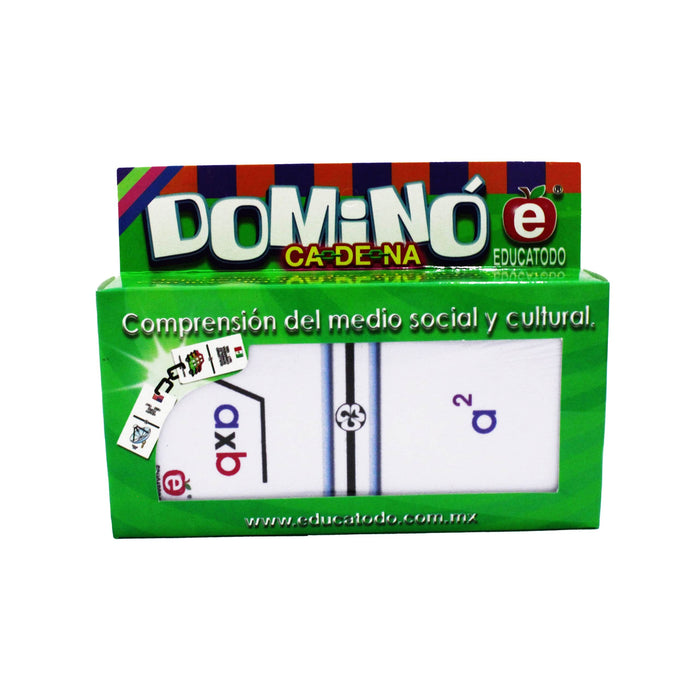 Juega el Dominó Algebraico, resolviendo el reto que en cada turno se plantea para colocar una pieza. Se reafirman conocimientos de álgebra, además de favorecer la concentración y memoria, beneficia el trabajo en equipo y la convivencia. Las piezas están elaboradas con material grado alimenticio e impresas con tintas libres de toxicidad.