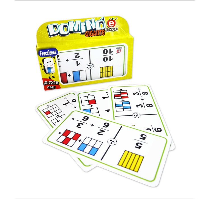 Juega el Dominó Gigante de Fracciones Sumas Cuadrados, uniendo las piezas de una suma determinada con su resultado, tanto el resultado como la operación, contienen gráficos de un cuadrado seccionado para mayor claridad, es una manera divertida de fortalecer la concentración, la memoria y la toma de decisiones, beneficia el trabajo en equipo y la convivencia. Las piezas están elaboradas con material grado alimenticio e impresas con tintas libres de toxicidad.