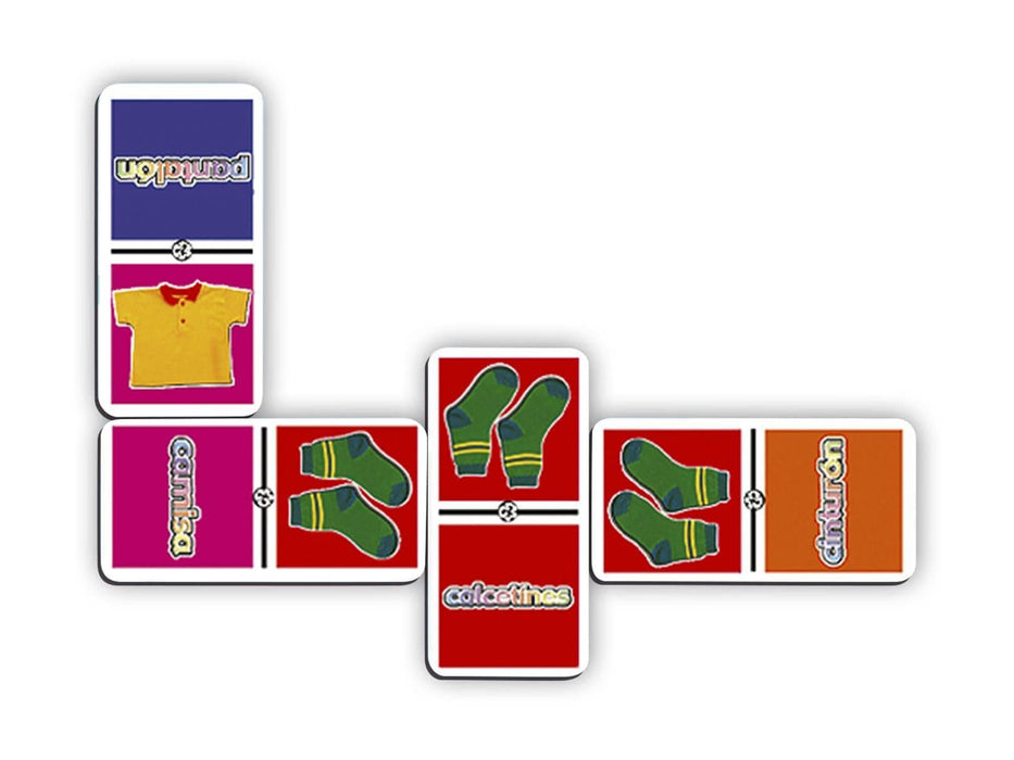 Juega de forma tradicional el Dominó Prendas de Vestir, asociando la imagen con el nombre de la prenda. Es una manera divertida de fortalecer los conocimientos de lectoescritura, así como la concentración, la memoria y la toma de decisiones, beneficia el trabajo en equipo y la convivencia. Las piezas están elaboradas con material grado alimenticio e impresas con tintas libres de toxicidad.