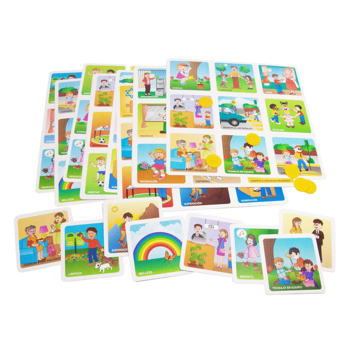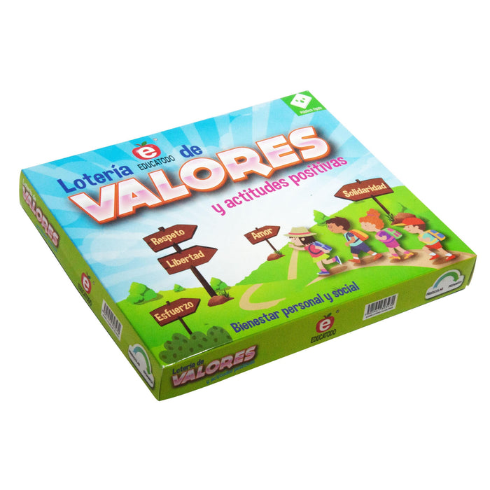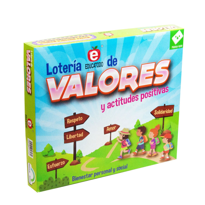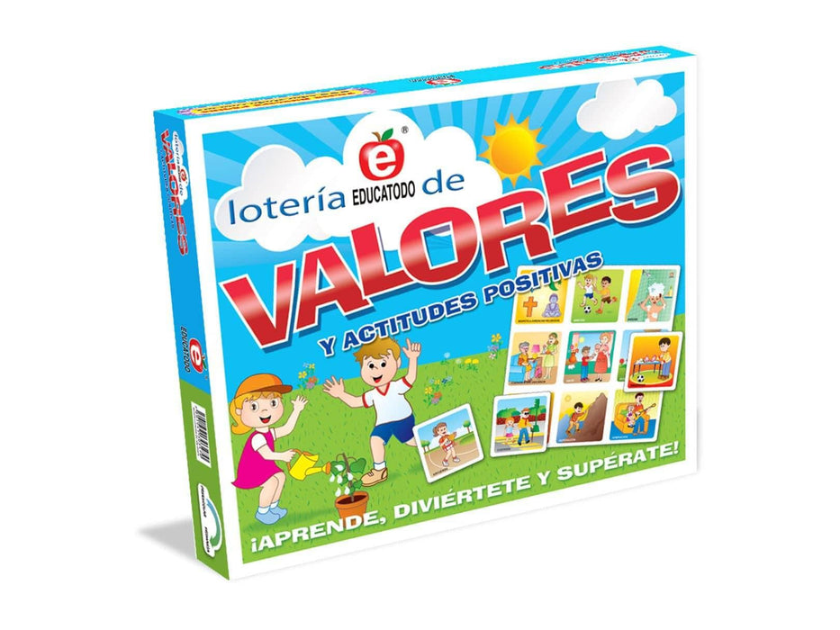 Diviértete jugando a la Lotería de Valores y Actitudes Positivas. Las niñas y los niños podrán conocer diversos valores y actitudes que les permitirán no solo una sana convivencia en casa y escuela, sino también una guía personal para ser mejores personas, a valorar la importancia de dar y recibir un trato respetuoso como una forma de justicia para sí mismos y para terceros, a reconocer márgenes de acción y decisión en actividades cotidianas, a respetar reglas y acuerdos para regular su conducta, establecer compromiso consigo mismos, y con terceros, a reconocer acciones que favorecen el cuidado de los recursos naturales, etc.