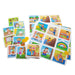Contiene: Guía didáctica, 12 tableros con medidas de 22.8 x 22.9 cm, 108 fichas de plástico de 2.2 cm y 27 tarjetas de 7.6 x 7.6 cm aproximado impresos a todo color por ambas caras en plástico laminado con tintas no tóxicas, las puedes limpiar con agua y esponja. Caja de 28 x 24 x 3.5 cm aproximado con tapa impresa a todo color y plastificada.