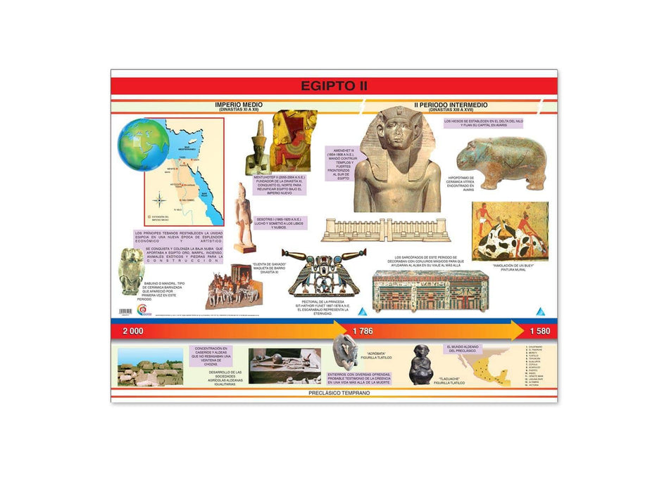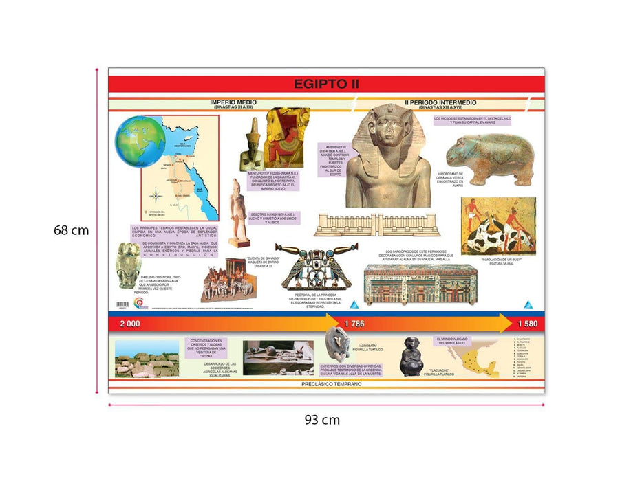 Es un excelente material didáctico, útil para el aprendizaje y/o reforzamiento de la Historia de Egipto. Producto impreso en papel de 1ª clase, incluye perchas de plástico autoadheribles para colgarlo.