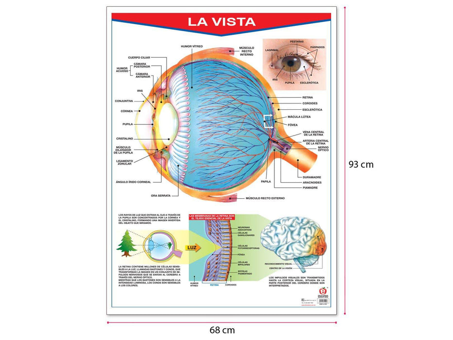 Es un excelente material didáctico, útil para el aprendizaje y/o reforzamiento de La Vista. Producto impreso en papel de 1ª clase y plastificado, incluye perchas de plástico autoadheribles para colgarlo.