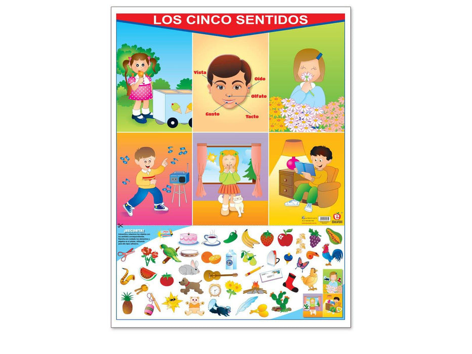 Es un excelente material didáctico, útil para el aprendizaje y/o reforzamiento de los Cinco Sentidos. Producto impreso en papel de 1ª clase y plastificado, incluye perchas de plástico autoadheribles para colgarlo.
