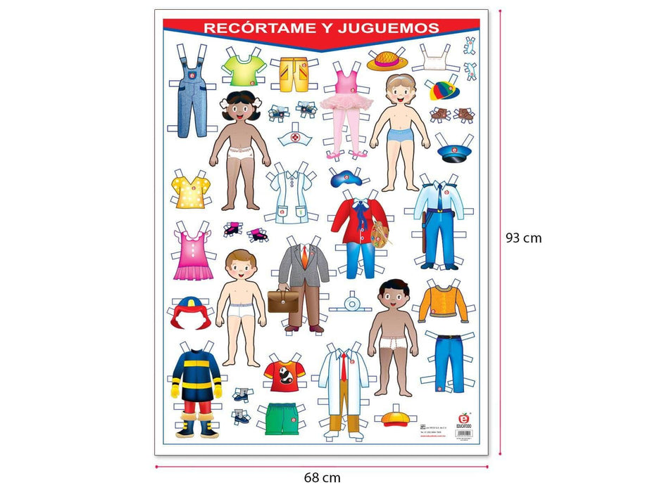 Es un excelente material didáctico, útil para el aprendizaje y/o reforzamiento de Actividades de Recortar y Jugar. Producto impreso en papel de 1ª clase, incluye perchas de plástico autoadheribles para colgarlo.