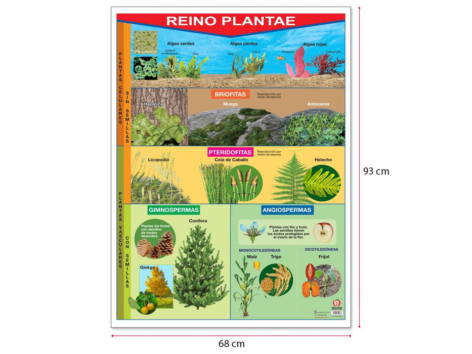 Es un excelente material didáctico, útil para el aprendizaje y/o reforzamiento del Reino Plantae. Producto impreso en papel de 1ª clase, incluye perchas de plástico autoadheribles para colgarlo.