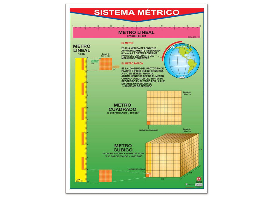 Es un excelente material didáctico, útil para el aprendizaje y/o reforzamiento del Sistema Métrico. Producto impreso en papel de 1ª clase, incluye perchas de plástico autoadheribles para colgarlo.