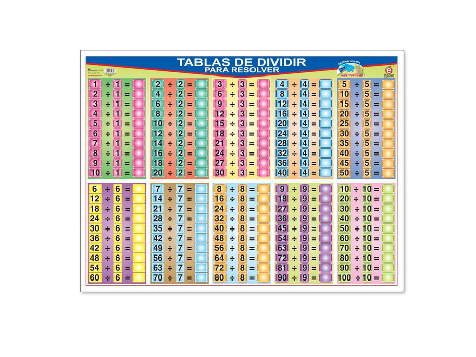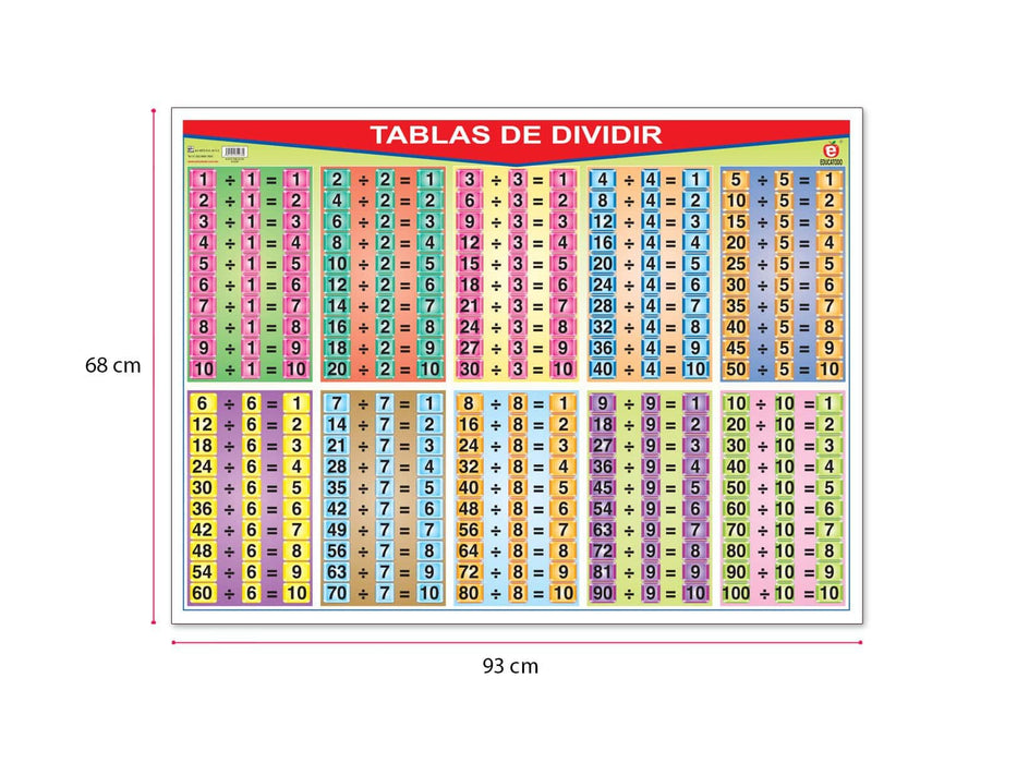 Es un excelente material didáctico, útil para el aprendizaje y/o reforzamiento de la Tabla de Divisiones. Producto impreso en papel de 1ª clase, incluye perchas de plástico autoadheribles para colgarlo.